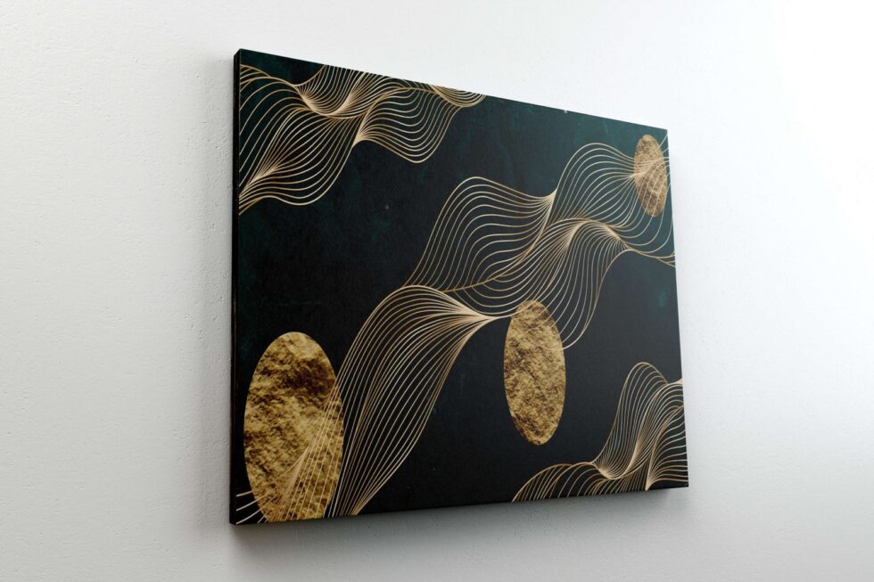 A golden round frame masterpiece that adds depth and beauty to any space.
